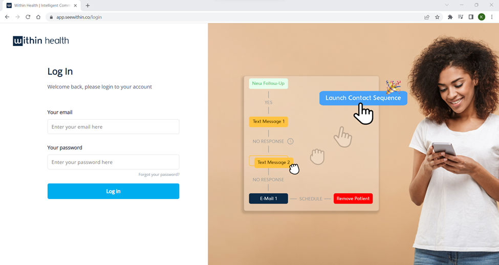 - Open your favorite browser and navigate to https://app.seewithin.co/login (Note: please use Google Chrome for optimal performance)